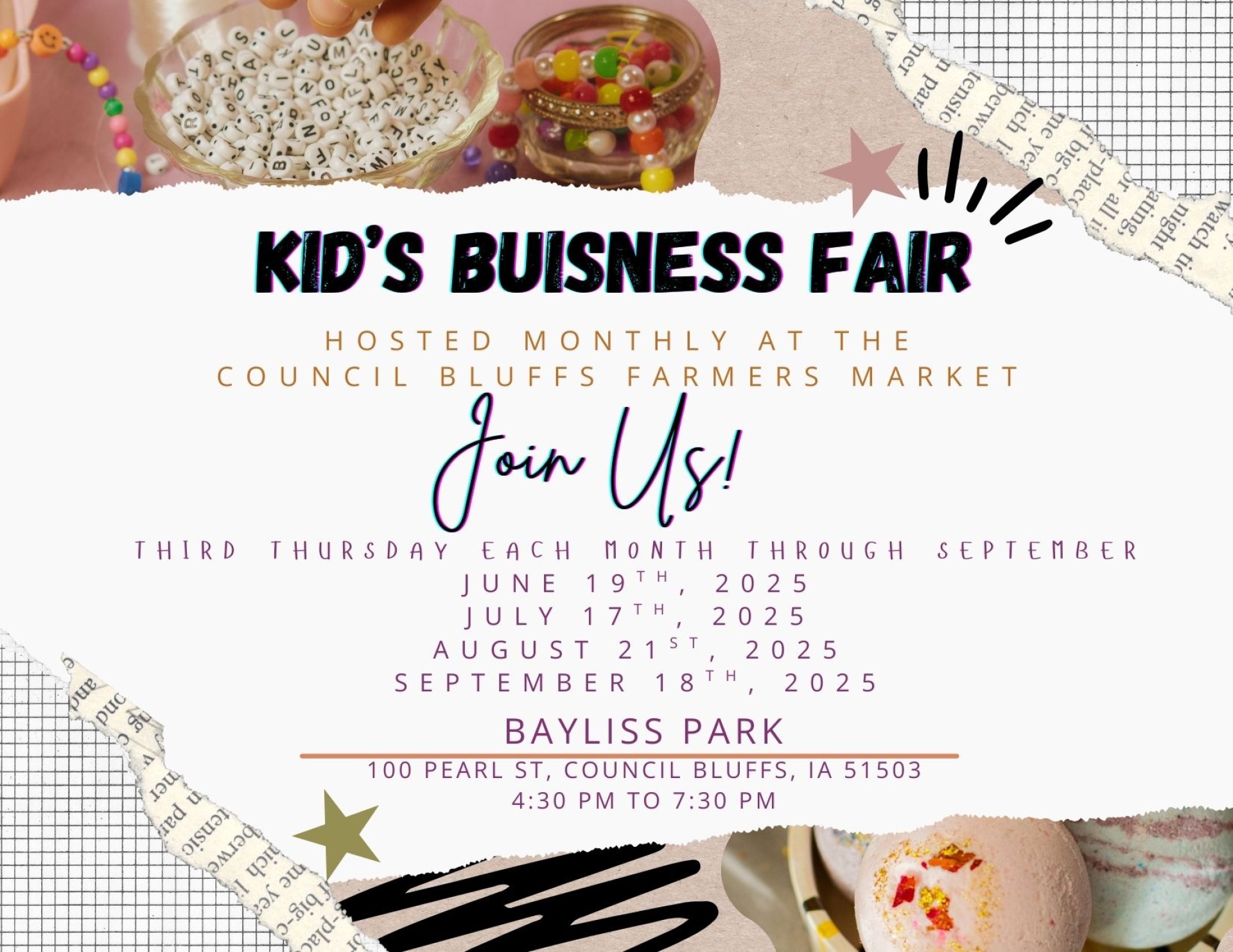 Join us for the 16th season of Farmers Market Council Bluffs, presented by CHI Mercy Council Bluffs, at Bayliss Park! Every Thursday from 4:30 – 7:30 PM, enjoy a vibrant market featuring seasonal produce, local artisans, bakers, and more.